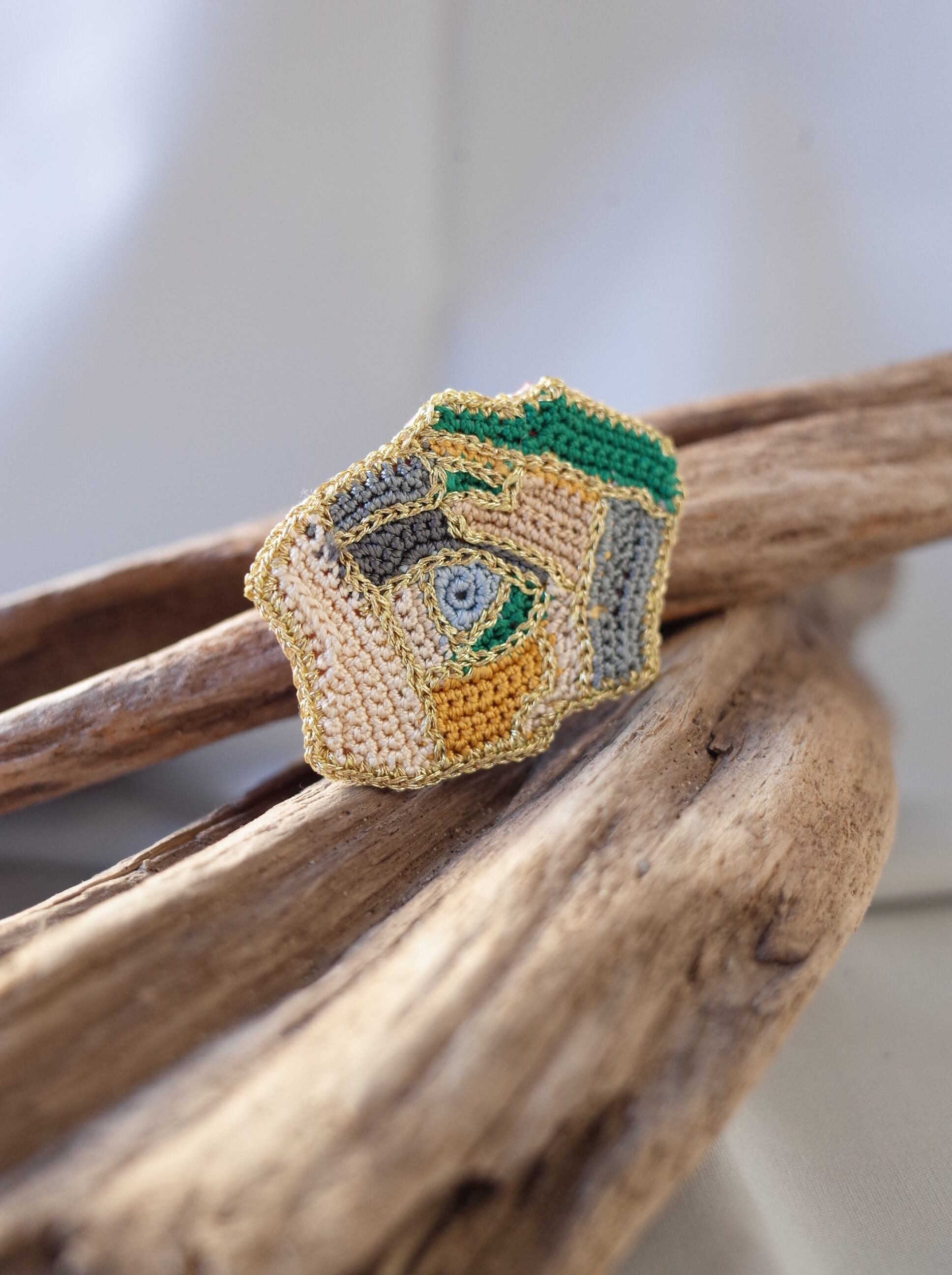 少しずつ余っていた糸達を使ったので、そこには自分の意思とは関係なく配色替えになる部分もあって、思いがけない面白みのある作品になりました。