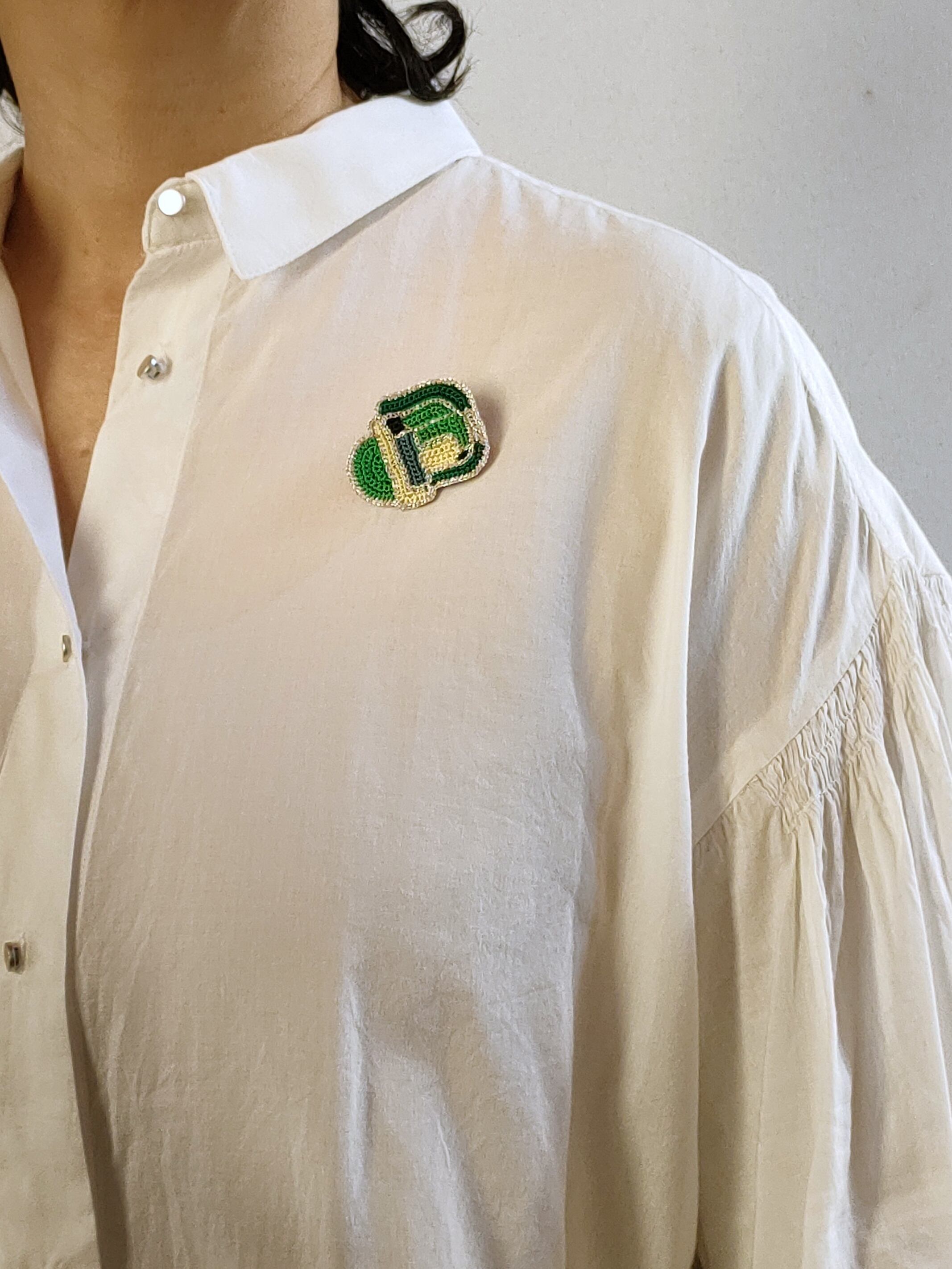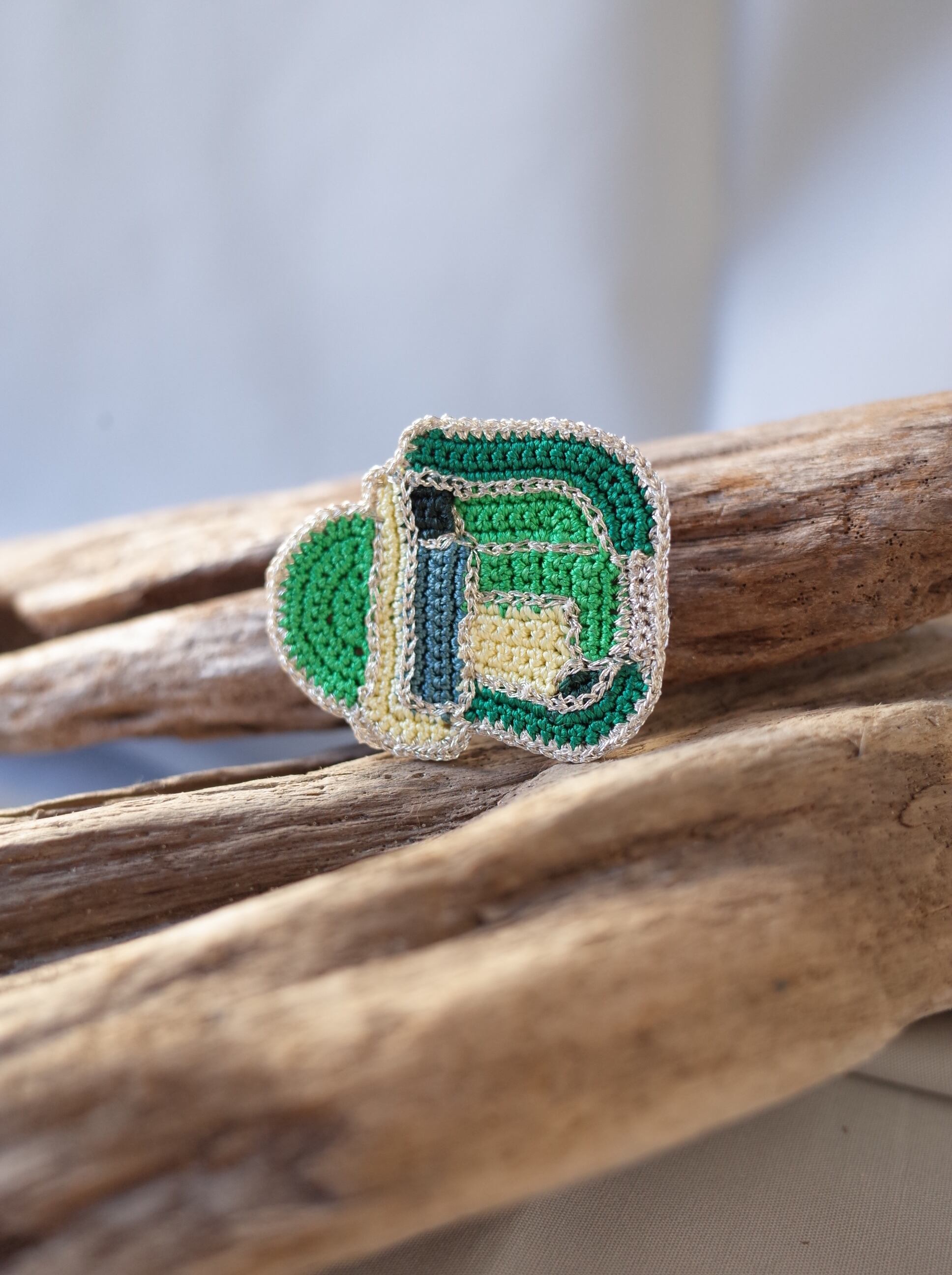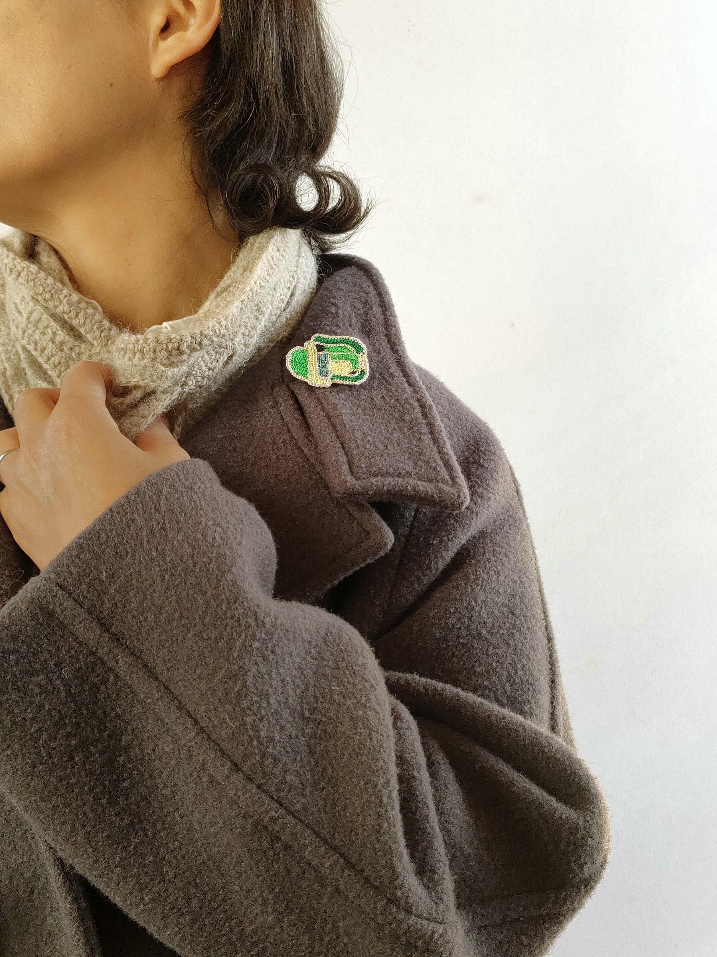 手仕事の魅力がぎゅっと濃縮された愛おしさのある、一点物のブローチです。