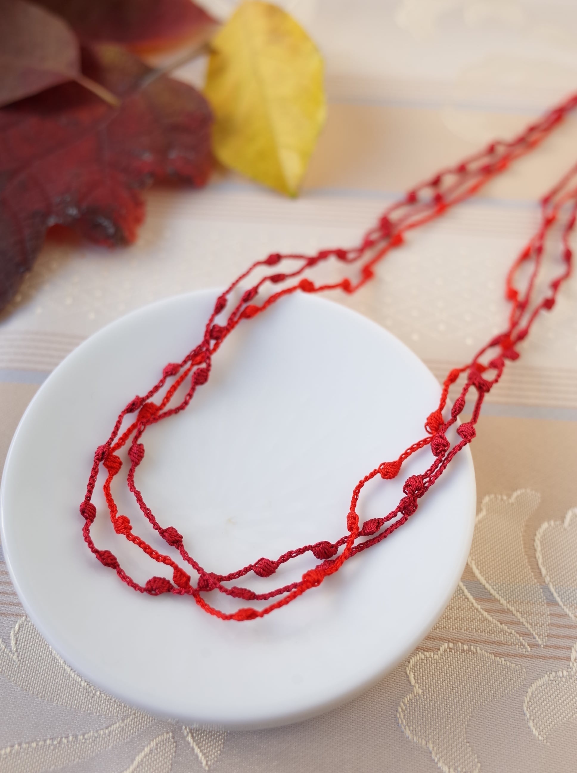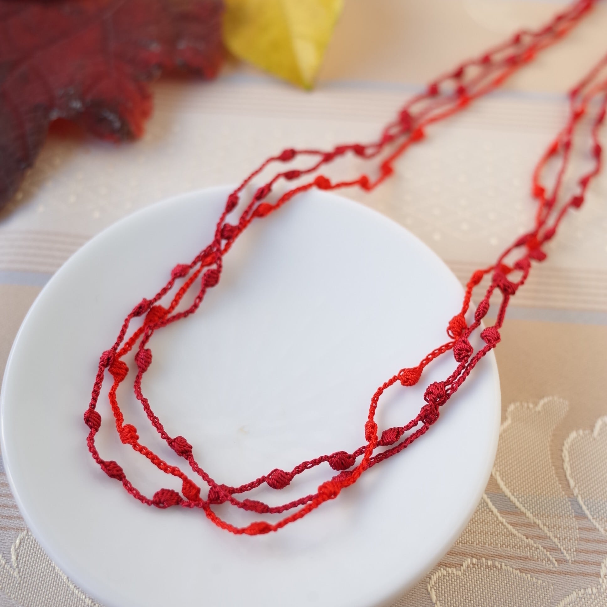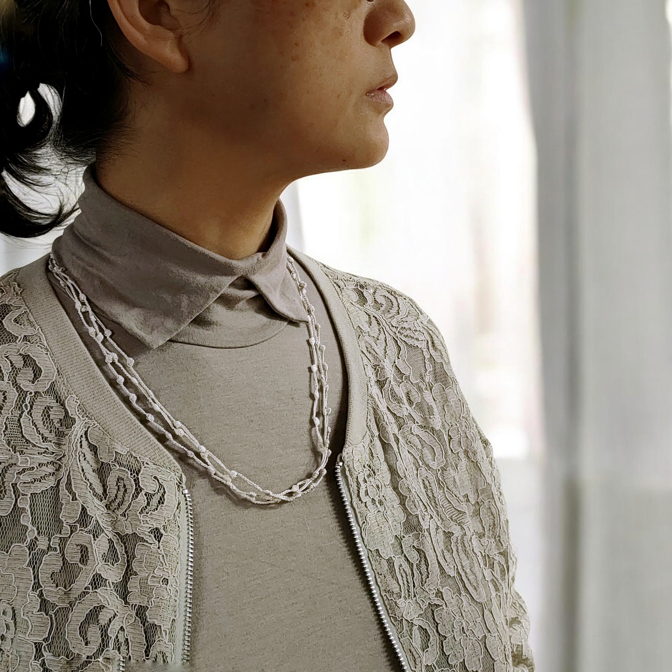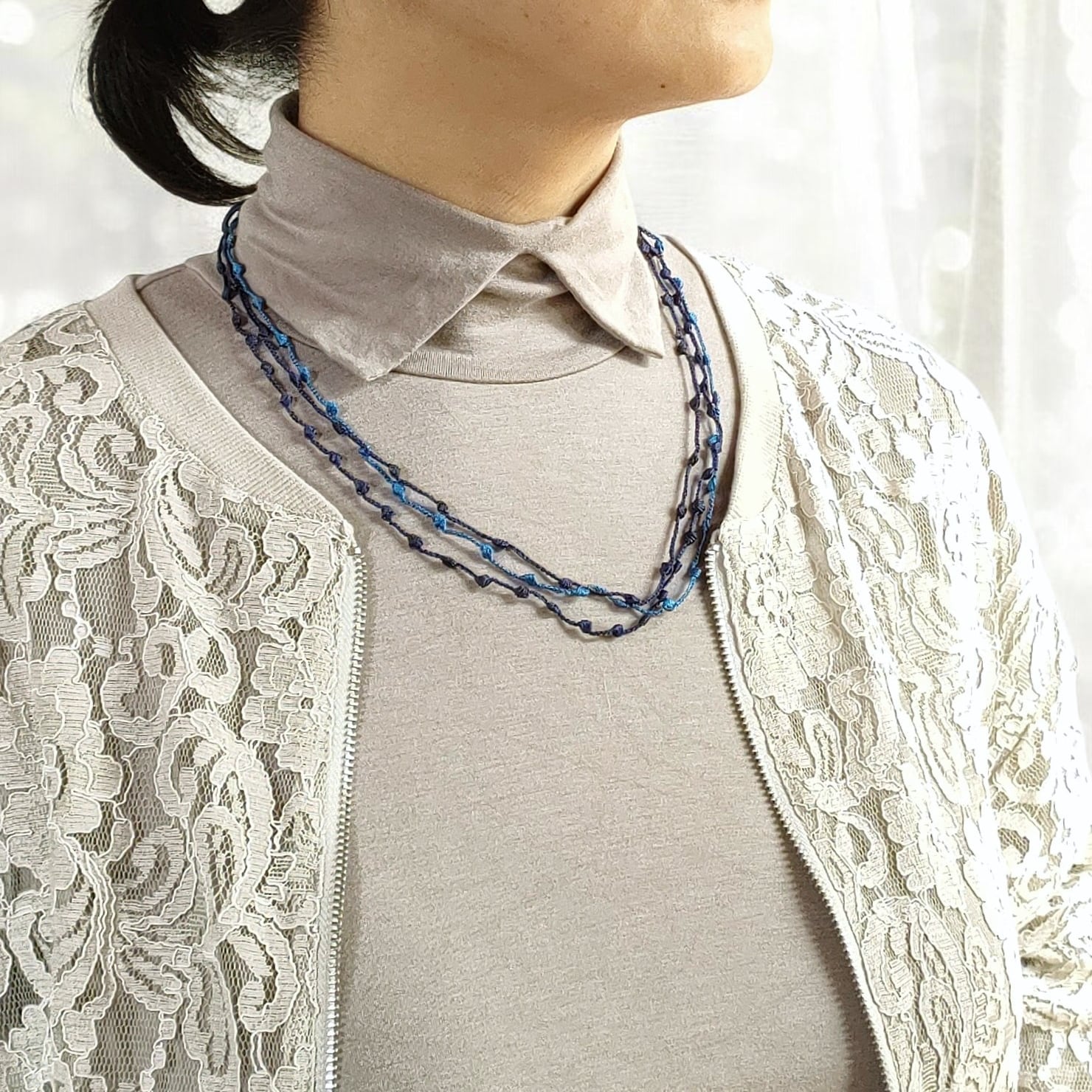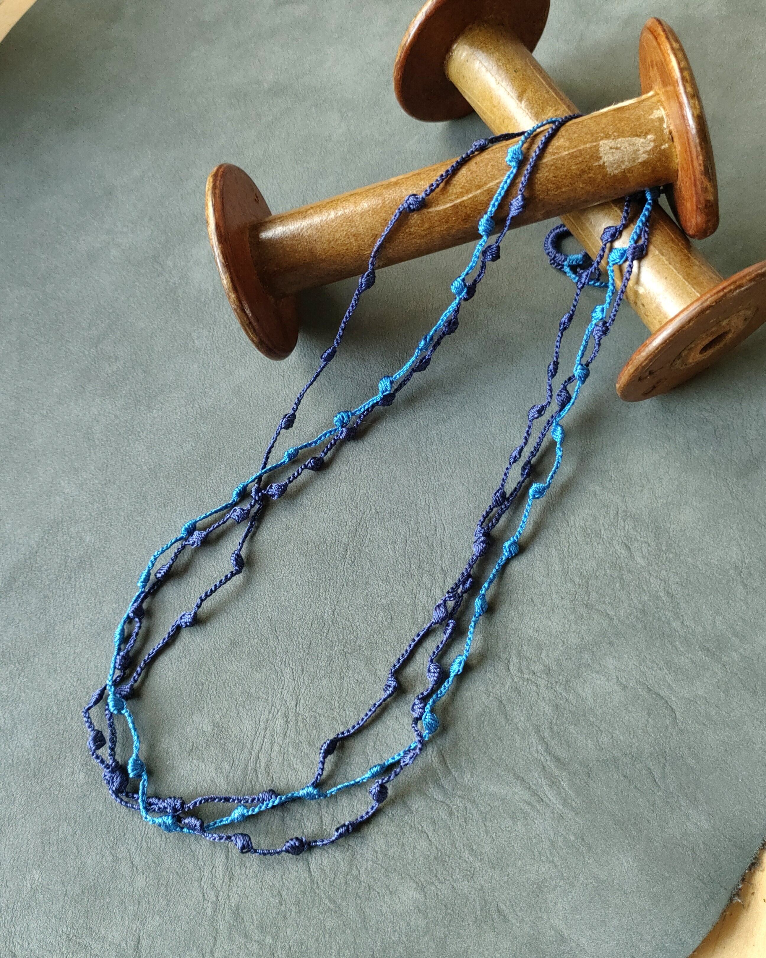 シルクの糸を編んで作った、たいへん軽いネックレスです。
