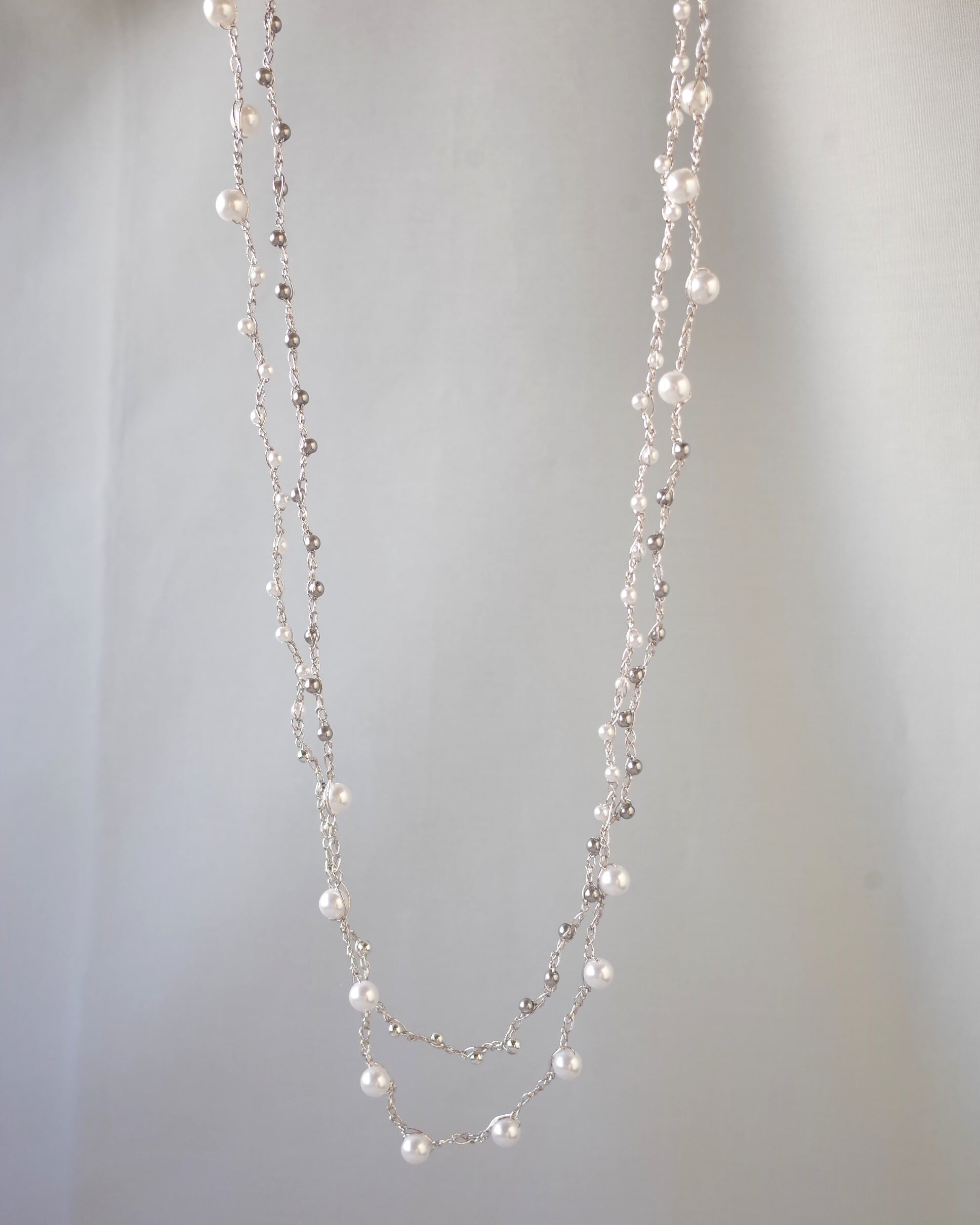 大きさも質感も異なる4種のパールとビーズが編み込まれています。